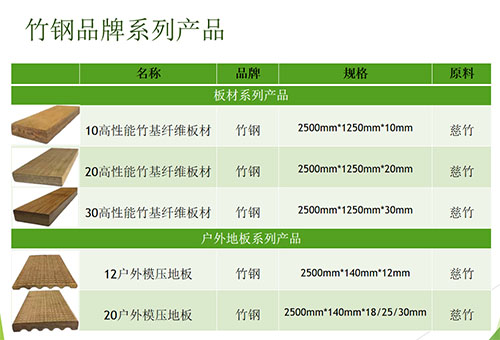 竹鋼采用純自然慈竹經(jīng)酚醛樹脂熱壓膠合而成,是將竹材重新組織,加以強(qiáng)化成型,具有高強(qiáng)度、低碳環(huán)保、高耐候性、阻燃、凈化空氣、運(yùn)用壽命長等特性,被稱之為“以竹代木,以竹代鋼”。